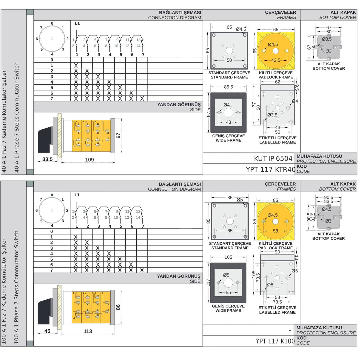 Rotary shaft assembly group 0-1-2-2-3-3-4-5-6-7 step/step commutator switch, YPT117K, manufacturer OPAŞ (Turkey)