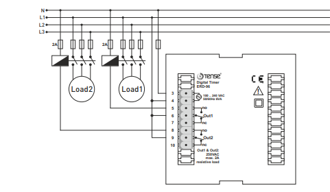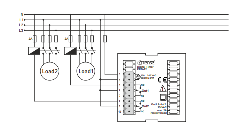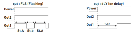 Time relay with two functions - on-delay function and cyclic relay function.