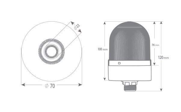 FLASHING ø70 NUT.CONN. SIGNAL BEACON WITH BUZZER, 40-250V AC/DC., BLUE WITH 20CM EXT.TUBE.