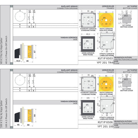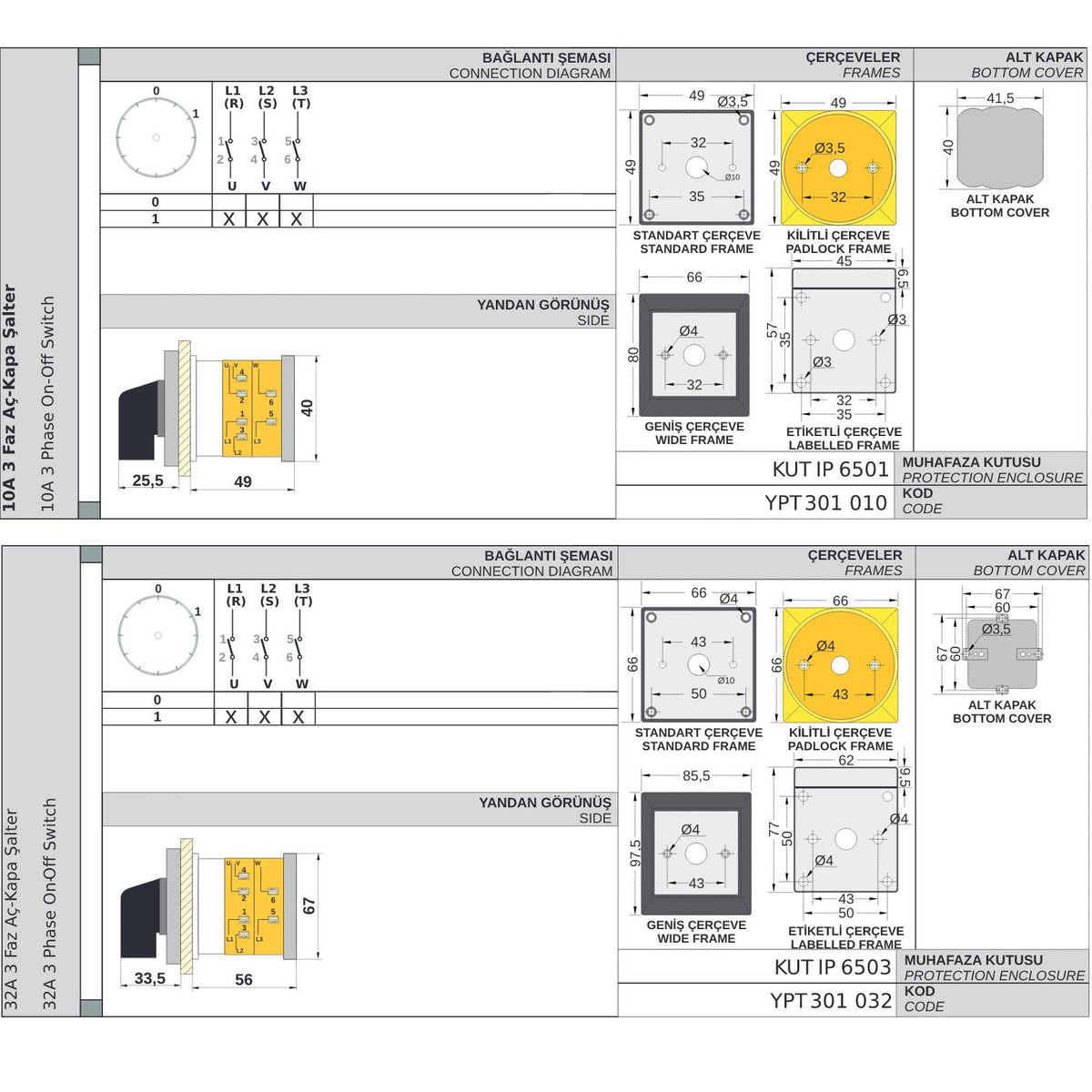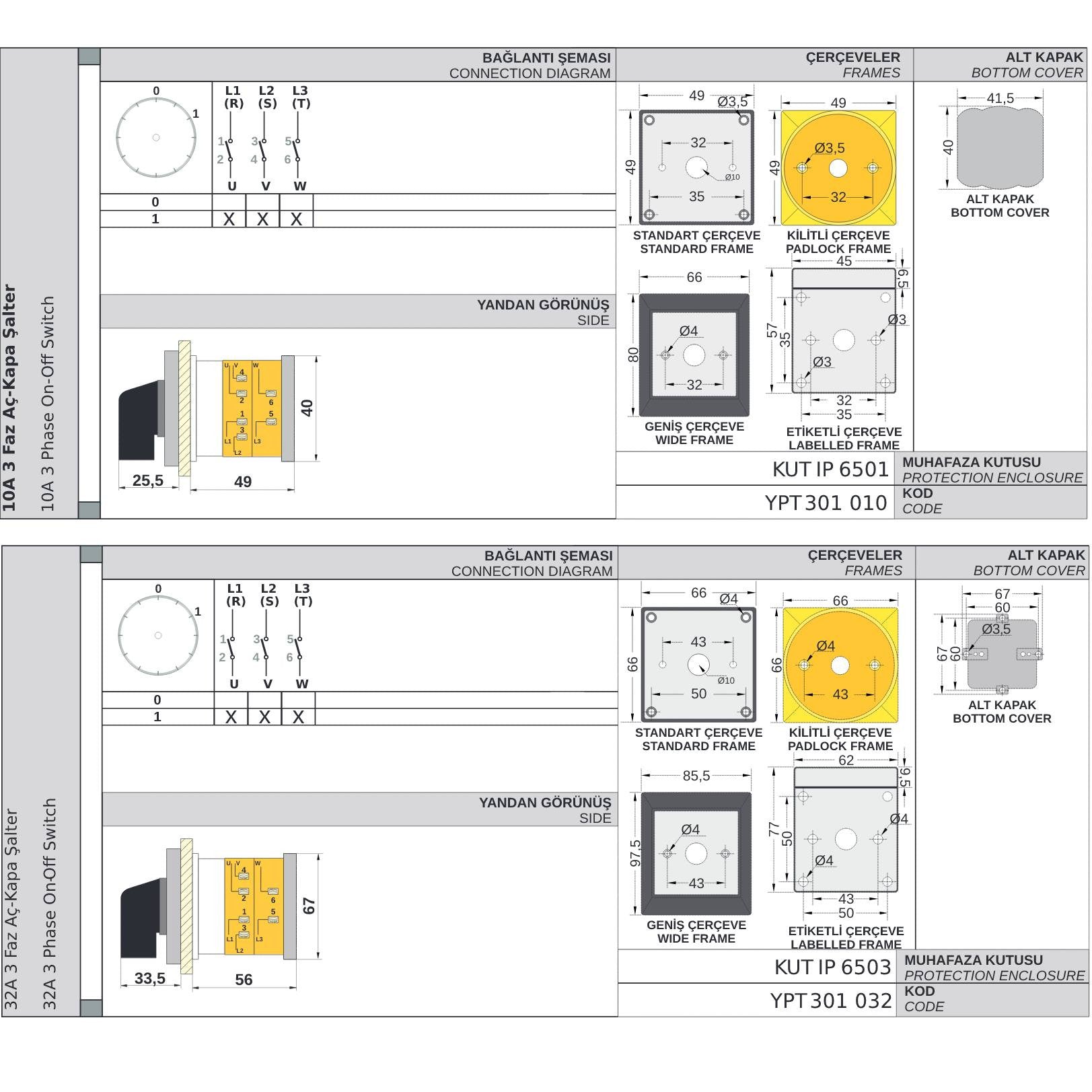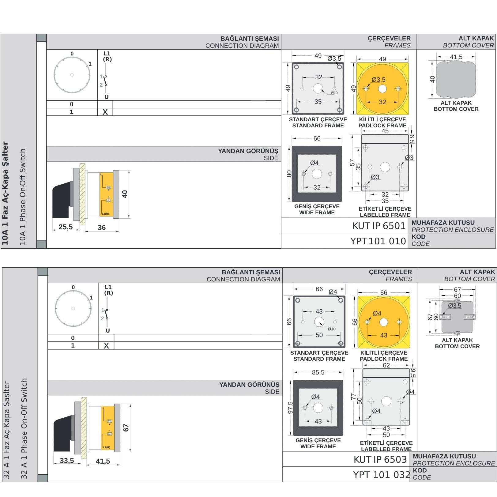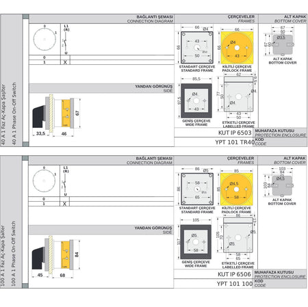 ON/OFF , ON-OFF / 0-1 maintenance cam pack rotary switch for front mounting, lockable, YKL101 / YKL201 / YKL301 / YKL401, manufacturer OPAŞ (Turkey)