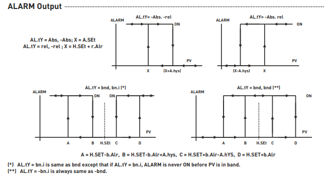 Relay OUT and ALARM (NO+NC) outputs 250 VAC, 2A (ALARM on only DT-48Y)