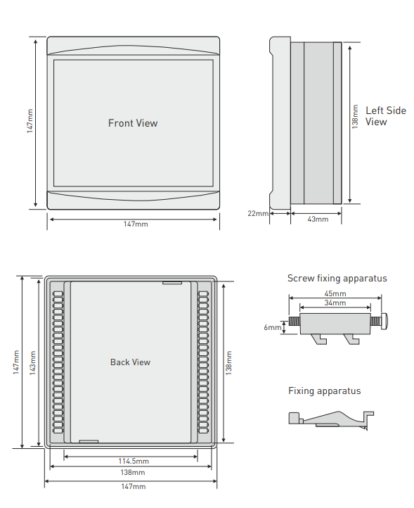 The digital processing of the measured values of the regulator ensures high accuracy in estimating effective voltage, current and power factor.