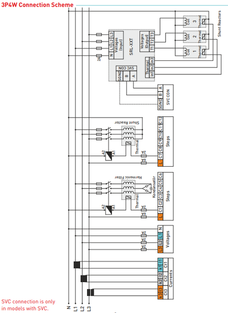 Single-phase, two-phase and three-phase capacitors and shunt reactors can be connected.