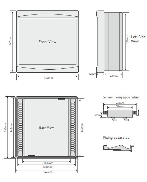 The digital processing of the measured values of the regulator ensures high accuracy in estimating effective voltage, current and power factor.