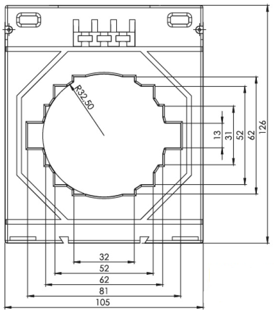Fold-in instrument transformer for 1500 A primary rated currents, 5 A secondary current, 25 VA rated outputs, available in 0.5S accuracy class.
