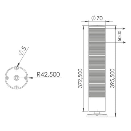 Piecu stāvu signālstabiņš ar virsmas montāžu un 10 cm cauruli, 12-24, 40-250V AC/DC, SNT-7013 / SNT-7022, ražotājs MUCCO (Turcija)