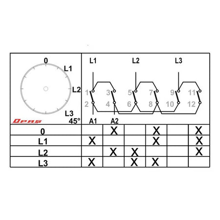 Voltmetra slēdzis 0-L1N-L2N-L3N rotācijas vārpstas pakešu slēdzis VOLTMETER, YET3V2M, ražotājs OPAŞ (Turcija)